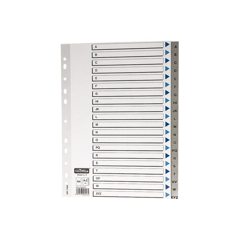 Divisori di elevata qualità dotate di indice frontale nel nuovo design a frecce, i tasti di scalino sono di colore grigio con lettere stampate in nero.