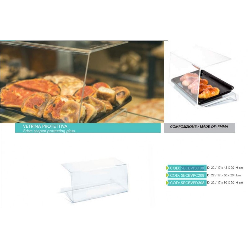 Utile ed essenziale in tutte le occasioni in cui è necessario creare una barriera tra il prodotto esposto ed il cliente, è indicato per panifici, pasticcerie, rosticcerie...