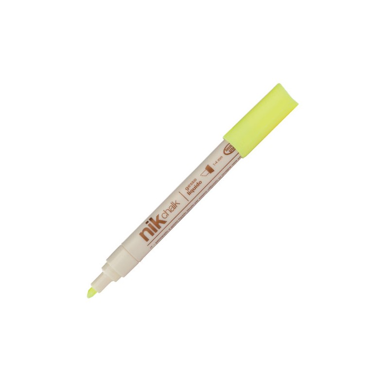 Marcatore a gesso rimovibile a secco, per tutte le superfici come lavagne,poster plastifi cati, vetrine di negozi. Eccellente per decorazioni colorate.Utilizzabile anche su superfi ci ruvide. Confezione in blister. Si cancella con un panno umido. Punta a scalpello 1-4 mm.