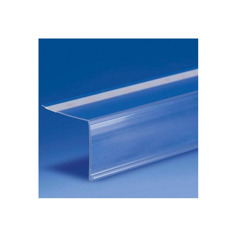 Profilo trasparente porta prezzo con adesivo inclinato 90° altezza 40 mm e lunghezza 1318 mm.